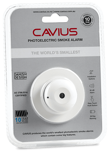 The 40mm CAVIUS 10-year Photoelectric Smoke Alarm is the world’s smallest smoke alarm, so it’s hardly seen – even in the centre of the room which is exactly where a smoke alarm needs to be.