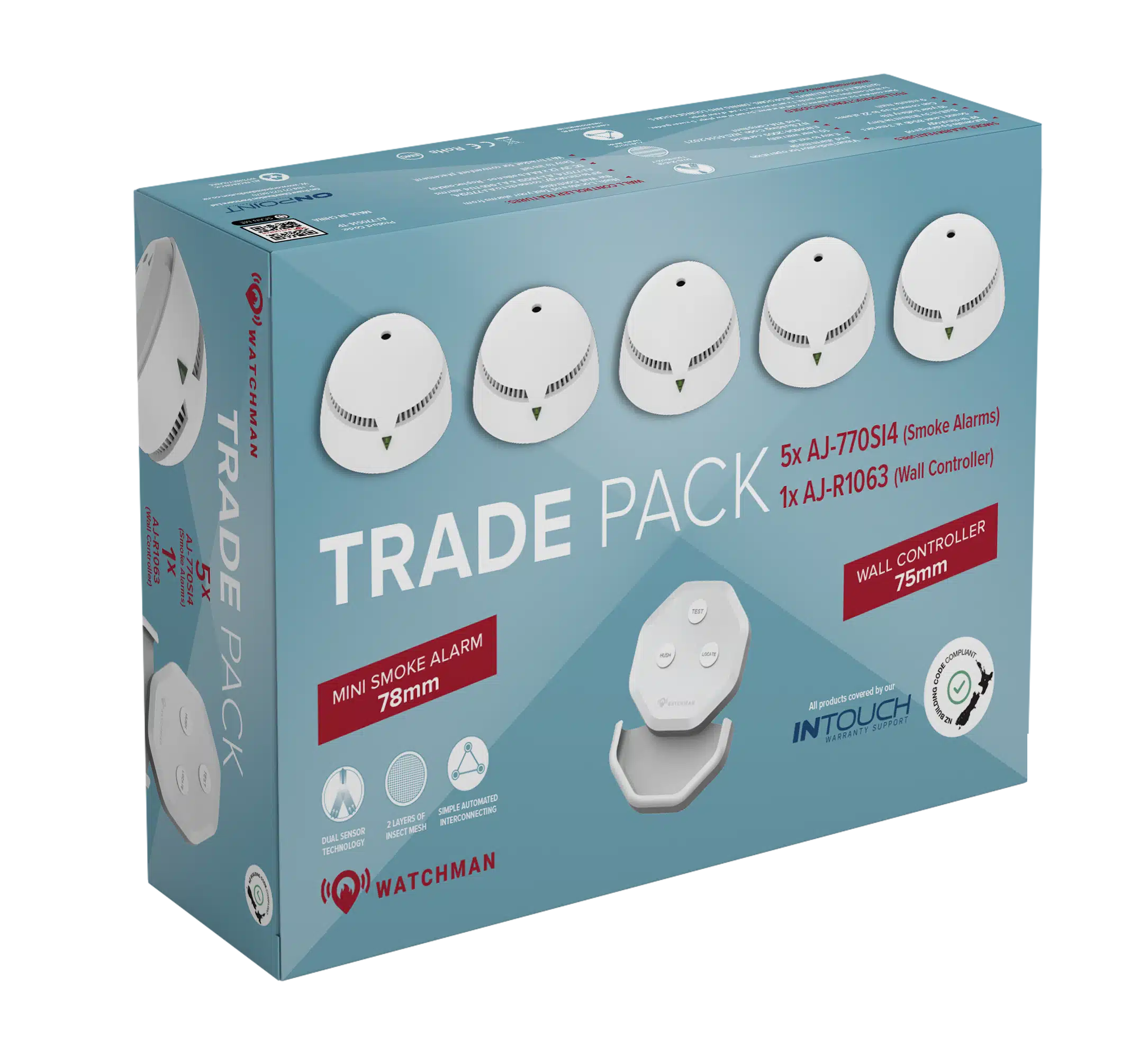 Product Code – Trade Pack: AJ-770SI4-TP (contains 5 x smoke alarms and 1 x wall controller)